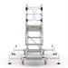 Constructed from robust aluminium, it provides long-term durability while remaining easy to manoeuvre between work locations. The platform features a wide anti-slip surface supported by fully adjustable stabilisers, ensuring reliable performance during maintenance, inspection, and assembly work.