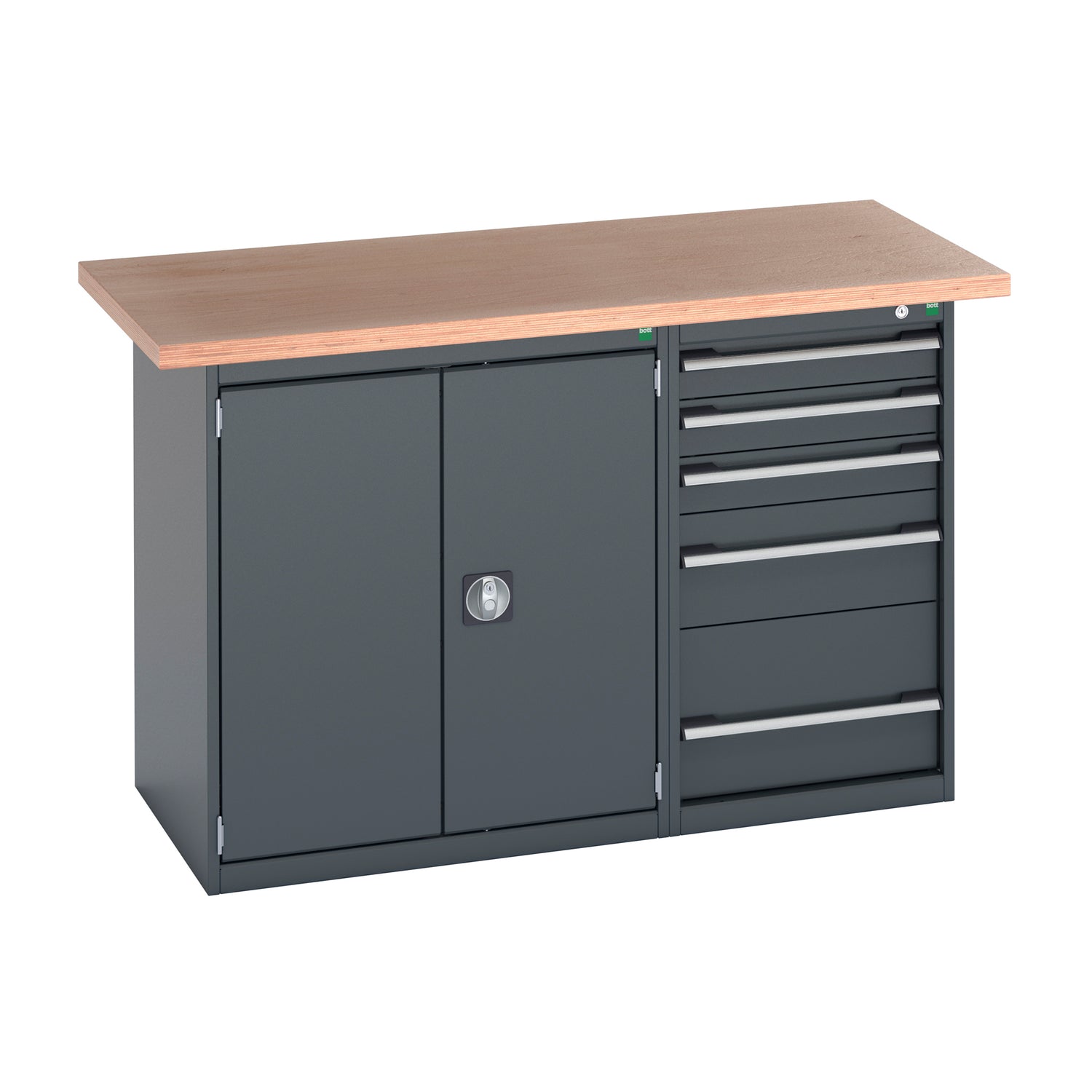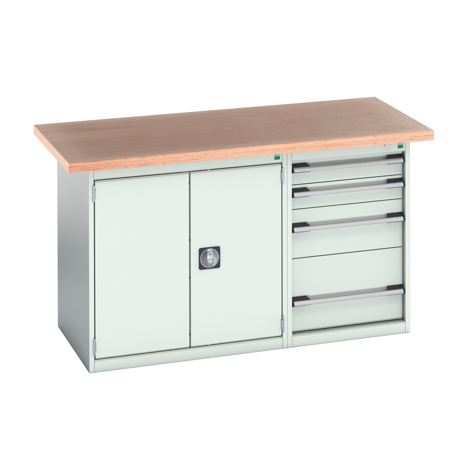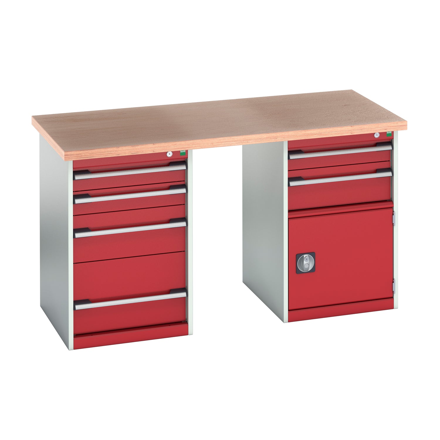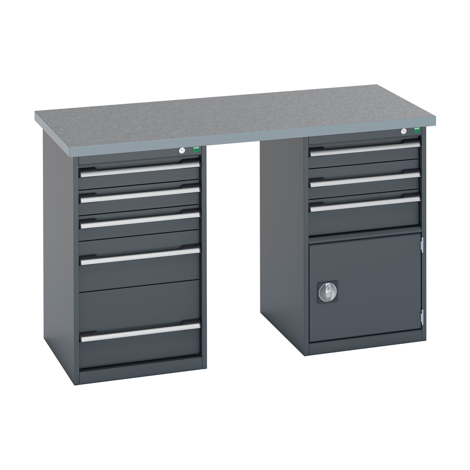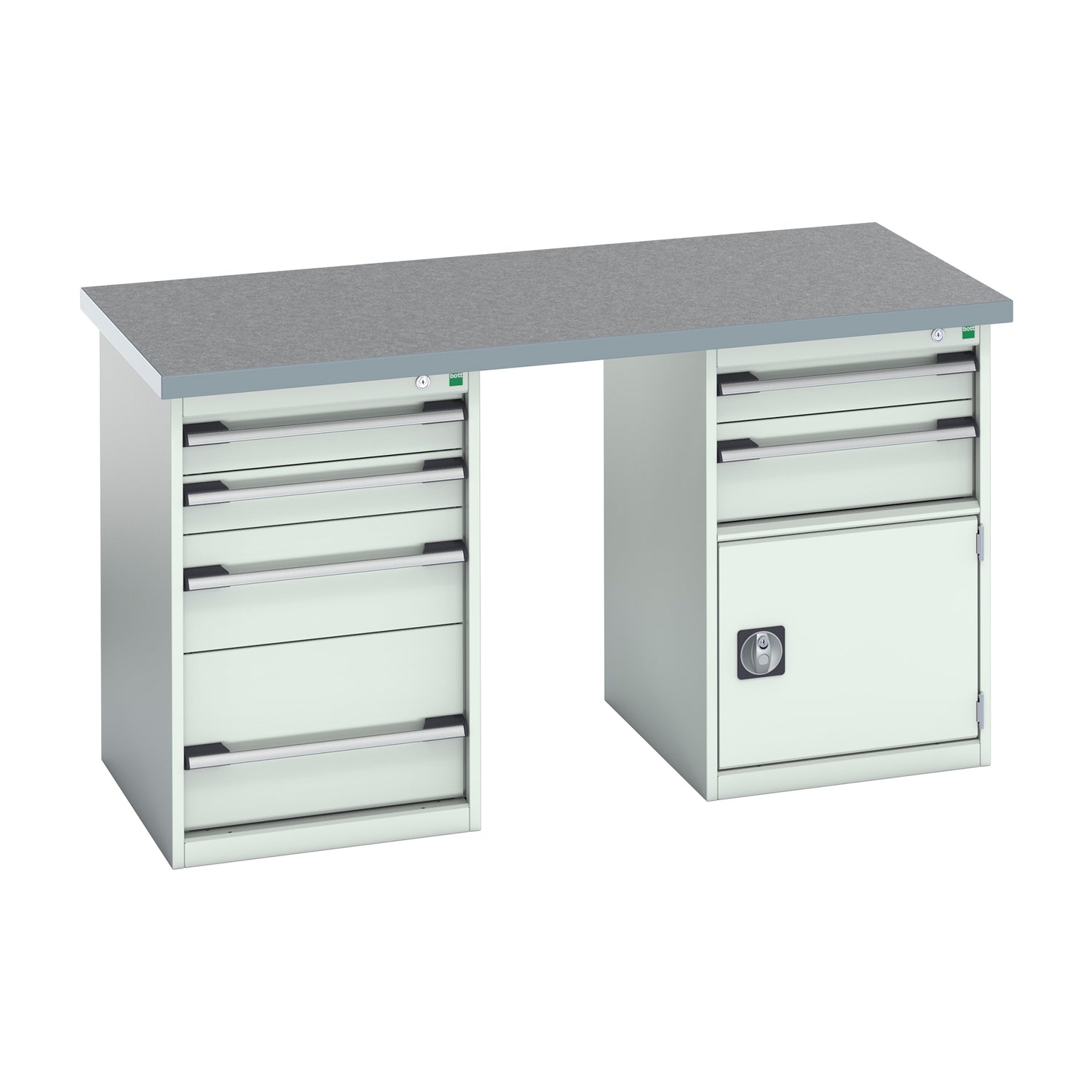 Constructed from heavy-duty steel and finished in Bott’s durable powder coating, this workstation offers superior stability, professional appearance, and long-lasting performance. Designed with a dual-pedestal layout, each unit includes secure storage cabinets with central locking drawers and cupboards, helping you maintain a safe and efficient workspace.