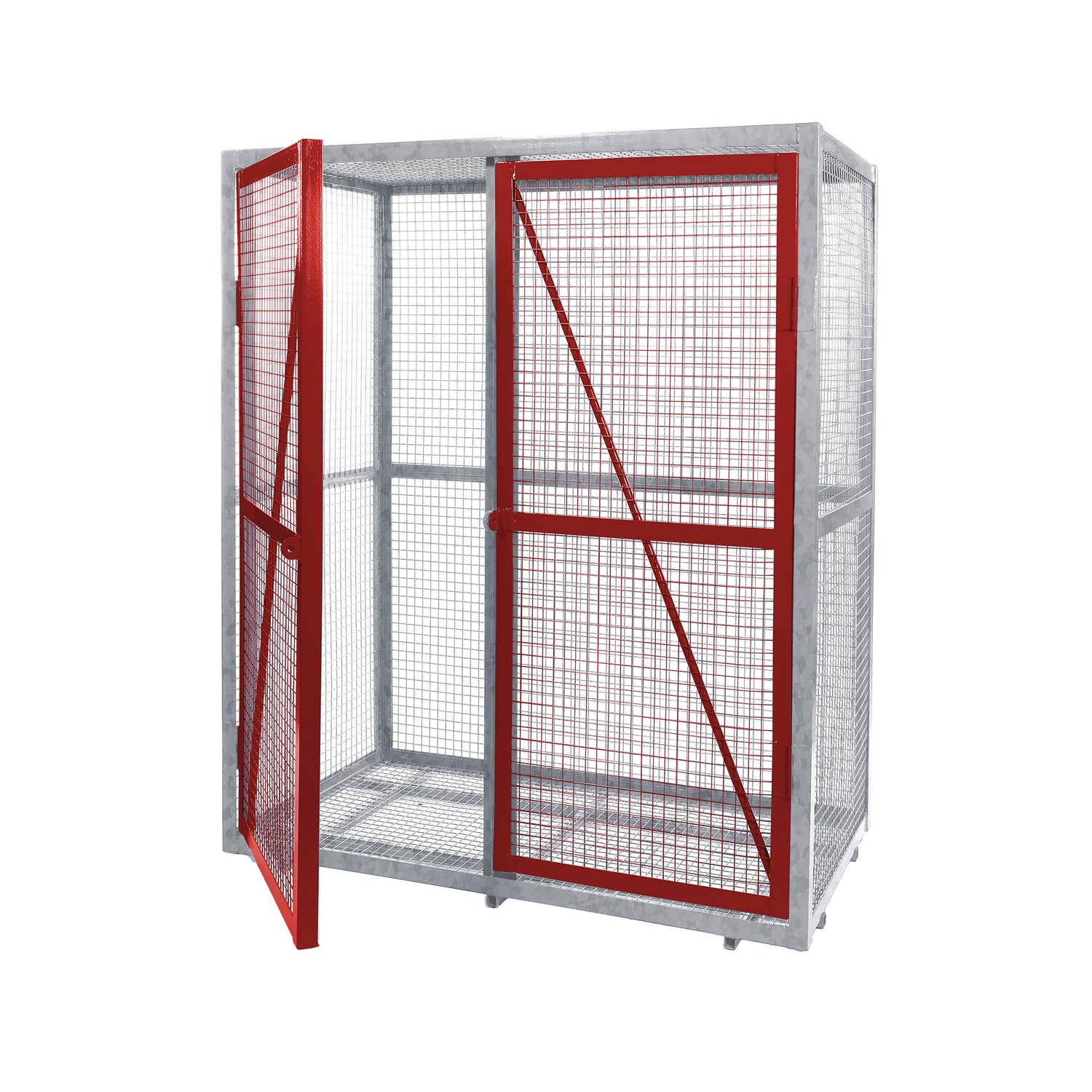 The GPC Grenadier Security Cage – Galv'd & Red Doors is a heavy-duty, lockable mesh storage solution designed for environments where durability, visibility, and controlled access are essential.