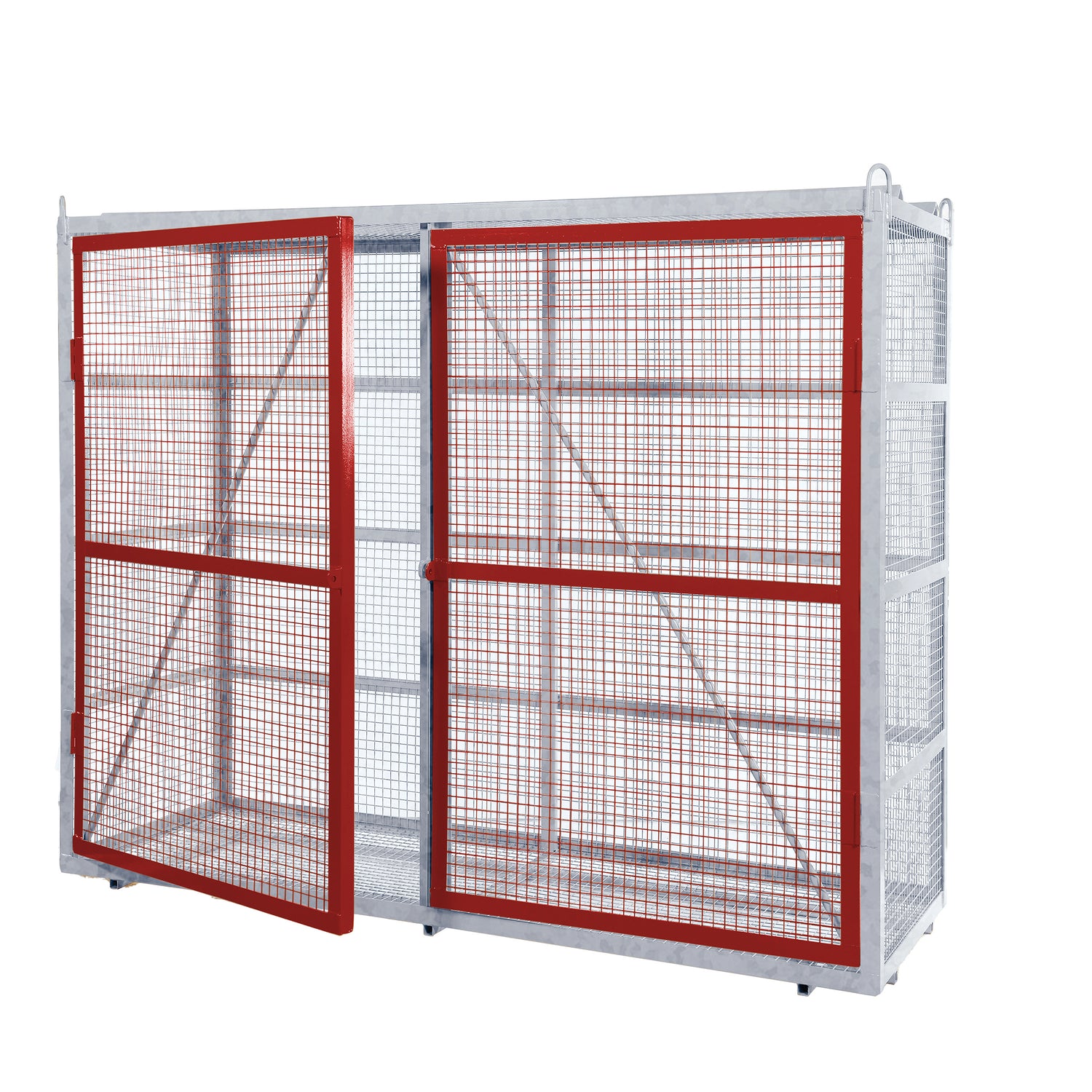 Built with a galvanized steel mesh body, it provides excellent resistance to corrosion, making it suitable for warehouses, factories, workshops, and areas exposed to harsh conditions. The high-visibility red doors ensure the cage is easily identifiable, supporting workplace safety practices and rapid recognition of controlled-access storage zones.