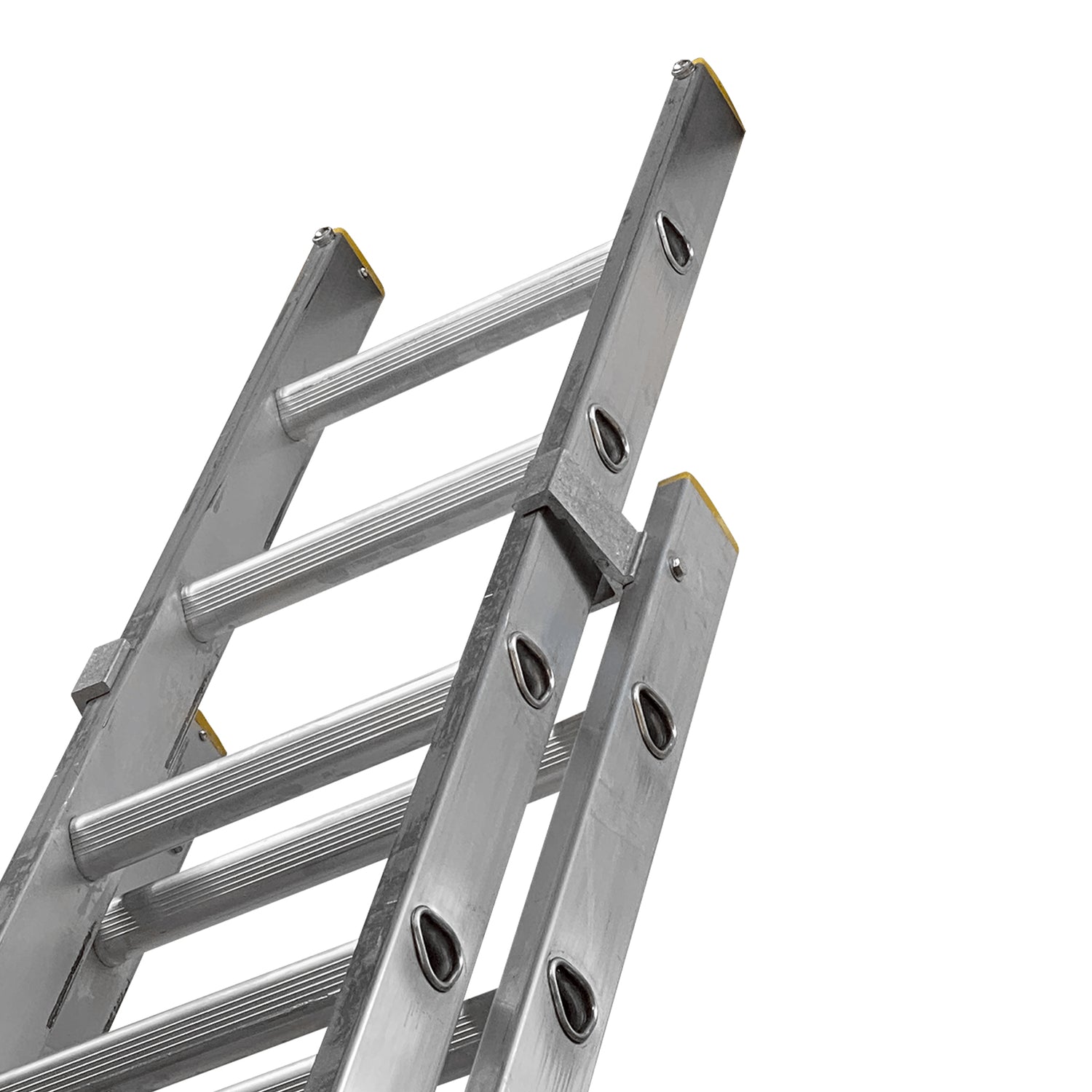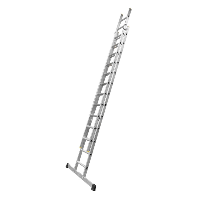 Part of the LFI H7DP Series, this double-section ladder is equipped with wide slip-resistant rungs, reinforced box-section stiles, and a stabiliser bar for improved balance and secure footing. Each section extends smoothly with precision locking mechanisms, ensuring effortless adjustment and safe positioning during use.