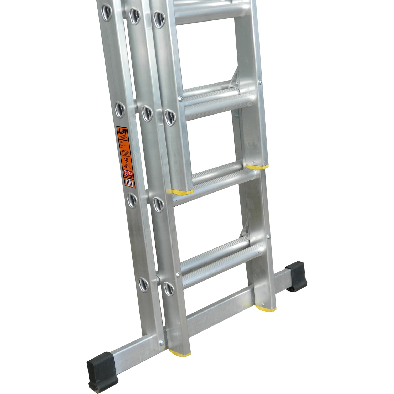 Available in multiple configurations, from 7 to 15 rungs (2 m to 4 m sections), the LFI Pro Triple Section Ladder offers flexible reach options suitable for both indoor and outdoor tasks — making it an ideal choice for professional contractors and tradespeople.