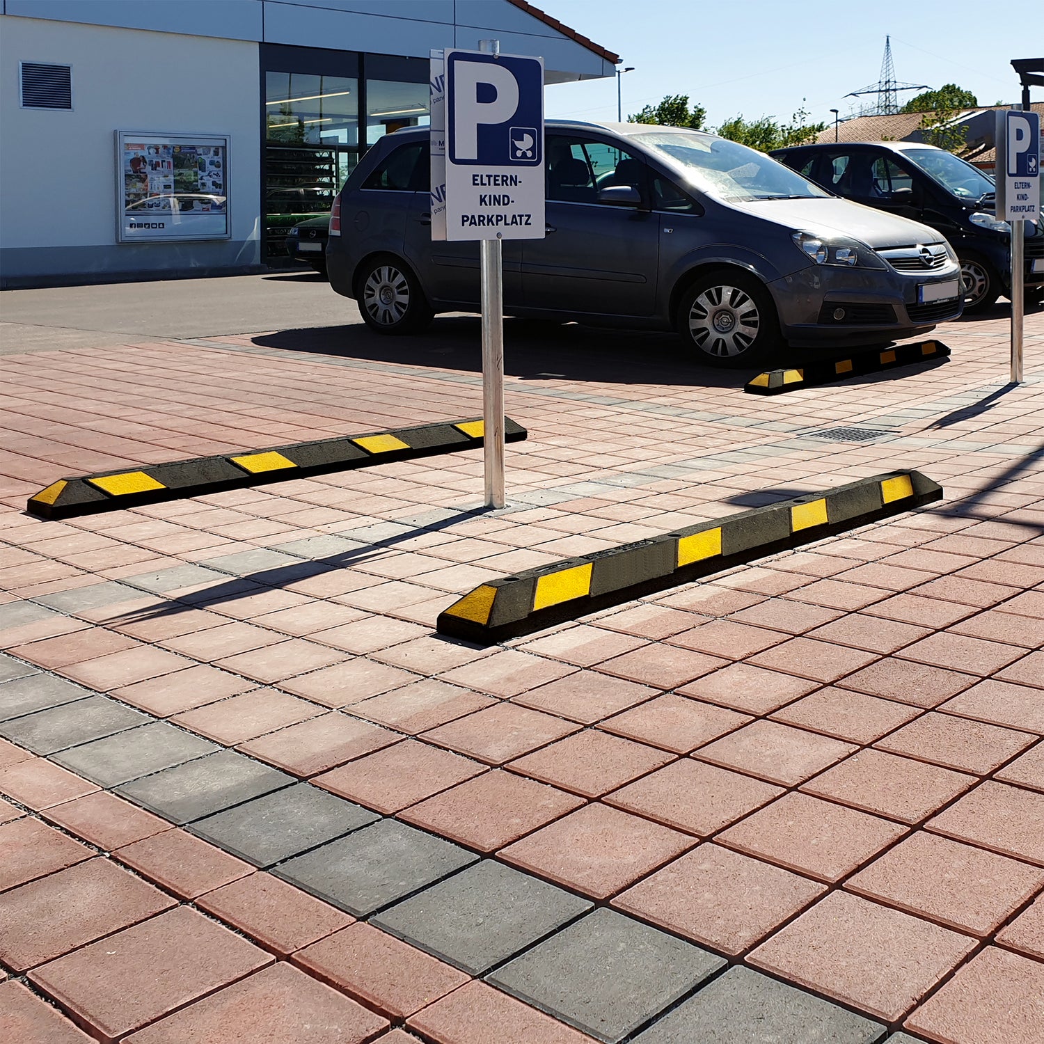 Constructed from recycled rubber, it provides a strong and weather-resistant barrier that prevents vehicles from overrunning parking bays while protecting nearby structures and pedestrian walkways. The robust build quality ensures long-term use in both indoor and outdoor parking environments.