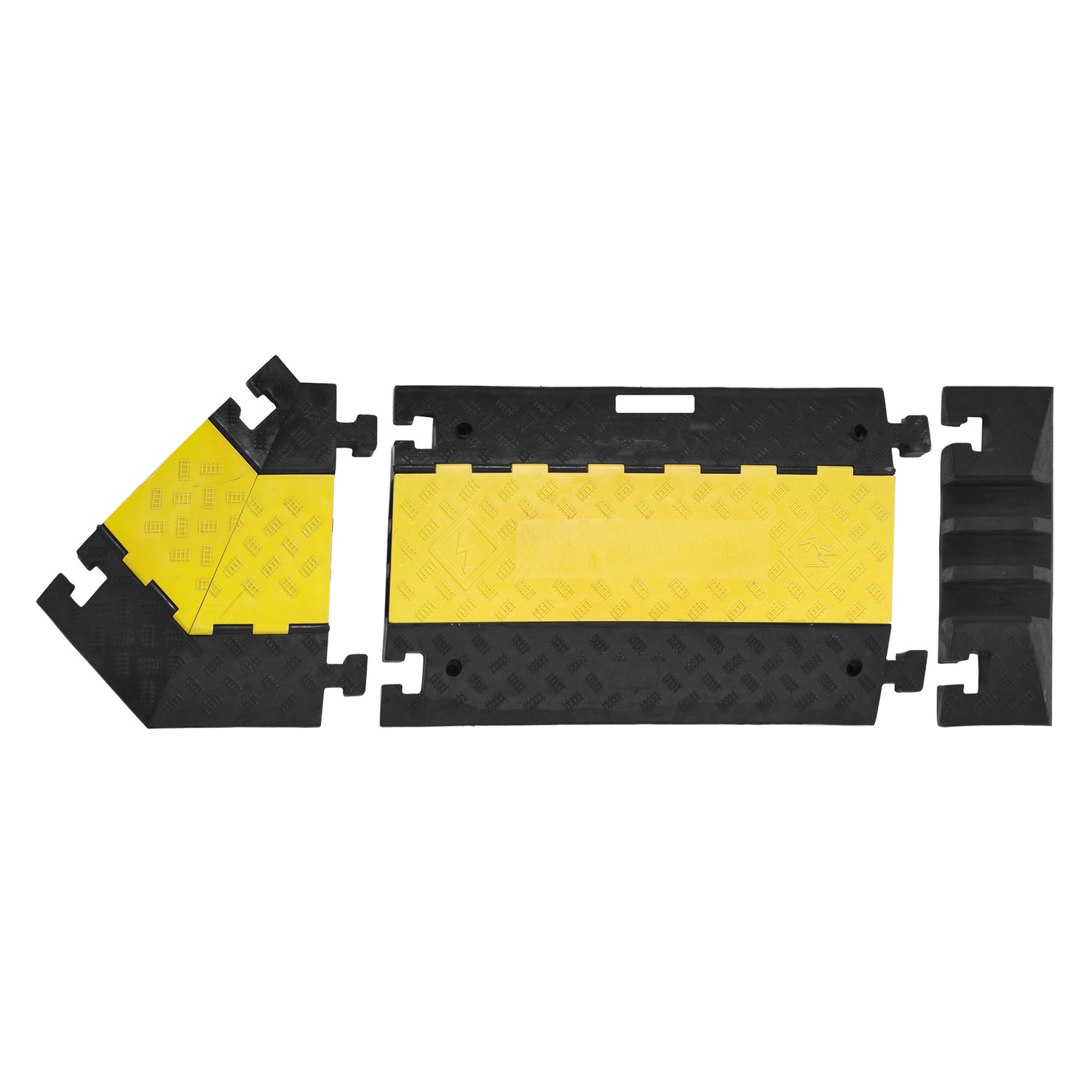 Manufactured from durable recycled rubber and fitted with a bright yellow hinged lid, it provides excellent visibility and safety while ensuring secure organization of cables and hoses beneath the surface. Its wide base and 75 mm profile deliver superior stability and strength, making it ideal for areas regularly accessed by vehicles, forklifts, and pedestrians. The modular design allows several ramps to be connected for extended coverage or customized layouts.
