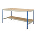 The half undershelf configuration provides additional storage space for tools, components, or packaging materials, while maintaining ample legroom for seated work or foot access. Constructed from a powder-coated steel frame and fitted with a durable worktop, this bench supports a wide range of professional applications — including assembly, packing, repair, and maintenance tasks.