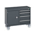 Constructed from heavy-duty welded steel and finished in Bott’s durable powder coating, this mobile cabinet is built for a lifetime of use. It features four full-extension drawers mounted on precision roller bearings and a half-height lockable cupboard with an adjustable shelf — offering flexible and secure organization for tools, components, and equipment.