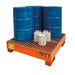 Designed for one 200L drum, it features a rugged steel body, bright orange powder-coated finish for visibility, and a large sump capacity to capture spills. Ideal for warehouses, factories, and workshops that require reliable spill prevention.